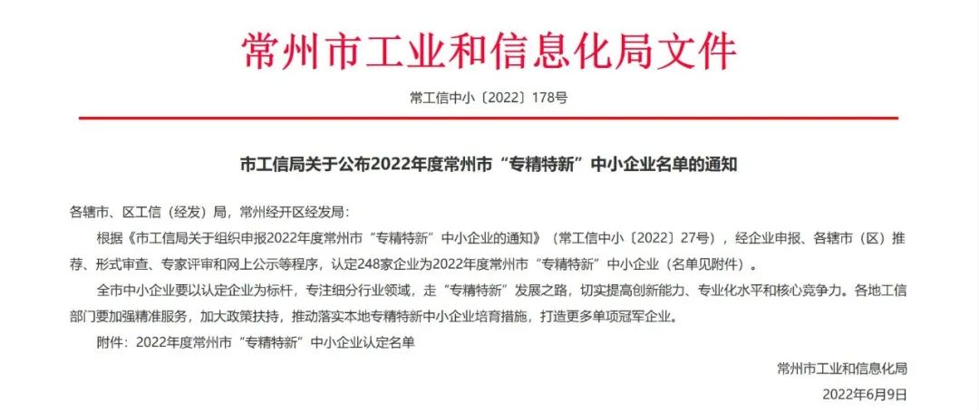 江蘇海目星被認定為2022年度常州市“專精特新”中小企業,是對我們在快速發展道路上取得成績的認可和鼓勵。未來,江蘇海目星將緊跟行業趨勢,繼續專注細分市場,不斷提升創新能力,增強核心競爭力,爭當高質量發展的排頭兵。