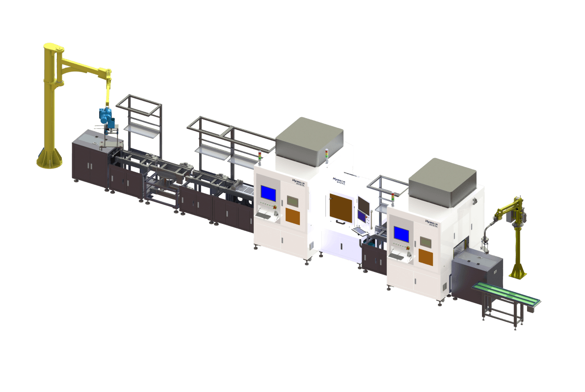該產線用于鋁殼大圓柱電池到儲能模組的自動化裝配、清洗、焊接、檢測工序